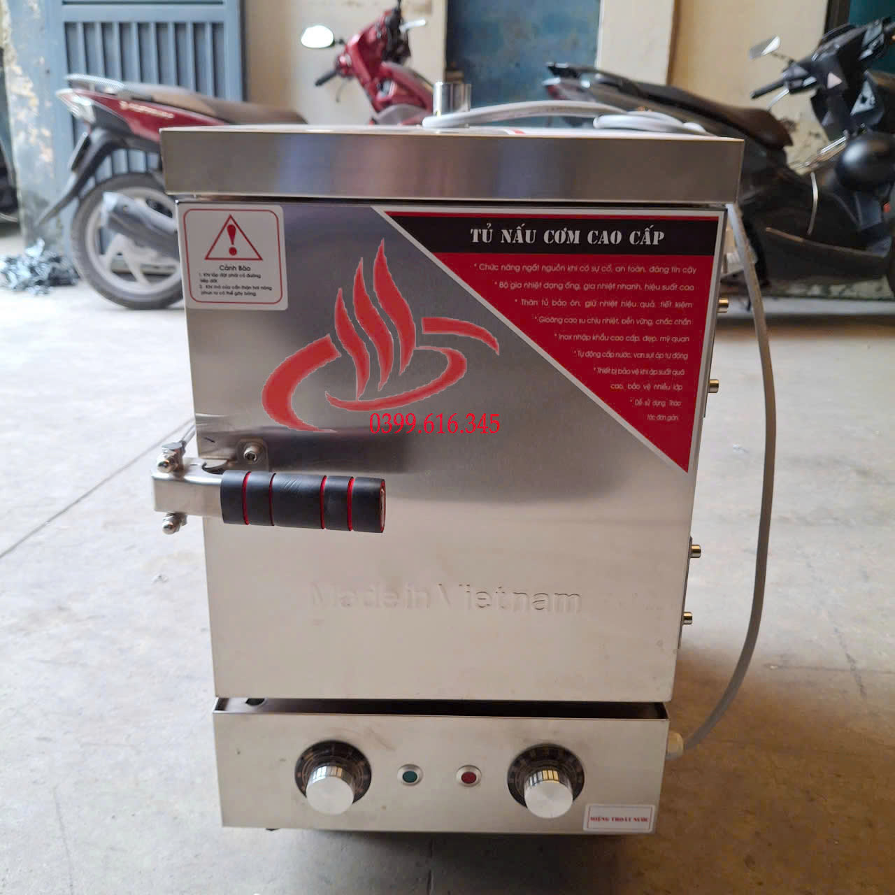 Năng suất: Nấu được khoảng 6 kg gạo/mẻ, hấp được lượng thực phẩm tương ứng.